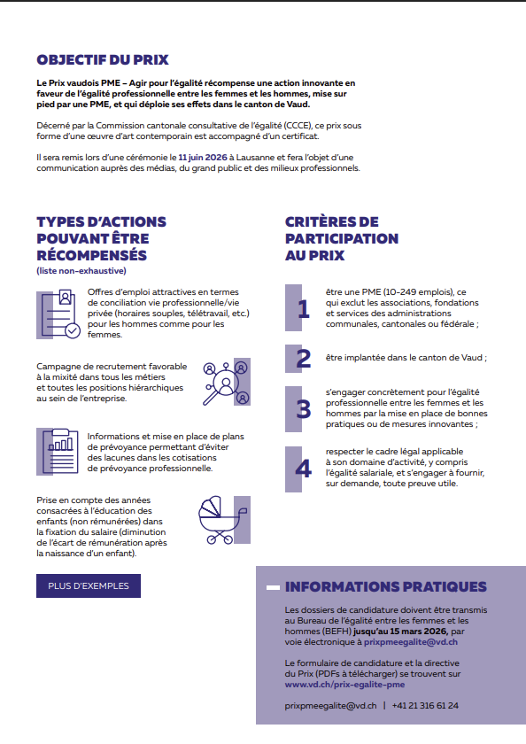 Pour plus d'informations : www.vd.ch/prix-egalite-pme