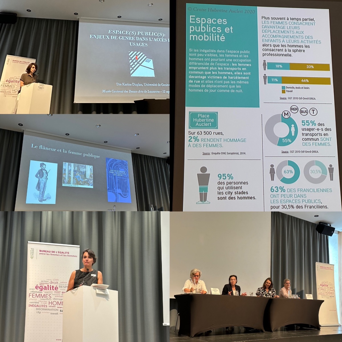 La Commission cantonale consultative de l’égalité (CCCE) et le Bureau de l’égalité entre les femmes et les hommes (BEFH) ont organisé un débat public consacré aux enjeux de l’espace(s) public(s) le 12 septembre au MCBA, Lausanne. Alexia Weill, membre du comité du CLAFV et de la CCCE, nous raconte : « Soirée passionnante ! Un thème qui nous a permis de découvrir ce thème très complexe et qui mérite d’être mis en lumière tant les inégalités sont profondément ancrées dans les habitudes, l’inconscient collectif et l’histoire. Une conférence de Karine Duplan en première partie puis une table ronde animée par Romaine Jean avec Nicole Surchat Vial, Cléolia Sabot et Anaïs Potenza qui ont partagé leurs études et leurs expériences de terrain dans les domaines de l’architecture et de l’urbanisme, les préaux d’écoles et dans l’espace public. »